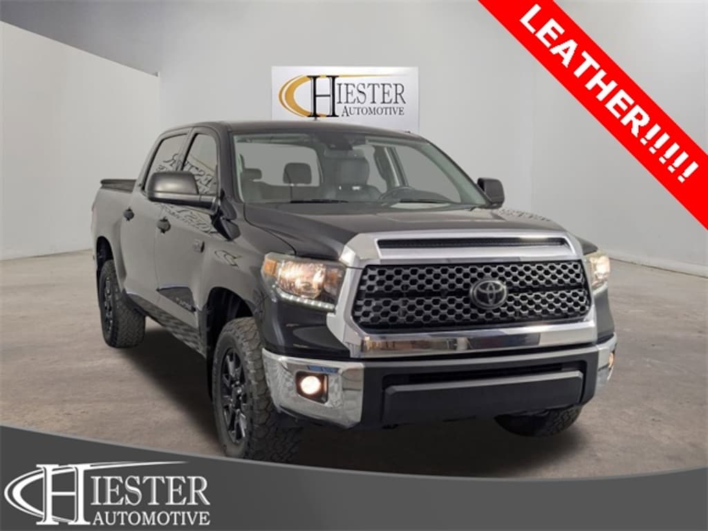 LOCAL TRADE, 4WD, FAST AND EASY FINANCING, THE NEW PRICE OUTLET, 4WD, 38 Gallon Fuel Tank Capacity, ABS brakes, Active Cruise Control, Anti-Theft Immobilizer w/Alarm, Compass, Electronic Stability Control, Front Bucket Seats, Heated door mirrors, Illuminated entry, Leather Seat Trim, Low tire pressure warning, Remote keyless entry, SR5 Leather Package, Traction control, Urethane Tilt/Telescopic Steering Wheel, 18" Styled Steel Wheels, 3-Passenger Front Bench Seat, 4-Wheel Disc Brakes, 4.30 Axle Ratio, 9 Speakers, Air Conditioning, AM/FM radio: SiriusXM, Apple CarPlay/Android Auto, Auto High-beam Headlights, Auto-dimming Rear-View mirror, Brake assist, Delay-off headlights, Driver door bin, Driver vanity mirror, Dual front impact airbags, Dual front side impact airbags, Emergency communication system: Safety Connect with 1-year trial, Exterior Parking Camera Rear, Fabric Seat Trim, Front anti-roll bar, Front Center Armrest w/Storage, Front fog lights, Front reading lights, Front wheel independent suspension, Fully automatic headlights, Garage door transmitter: HomeLink, Knee airbag, Occupant sensing airbag, Outside temperature display, Overhead airbag, Overhead console, Panic alarm, Passenger door bin, Passenger vanity mirror, Power door mirrors, Power steering, Power windows, Radio data system, Radio: Audio Plus AM/FM/HD Radio, Rear reading lights, Rear seat center armrest, Rear step bumper, Rear window defroster, Safety Connect, SiriusXM Radio, Speed control, Speed-sensing steering, Split folding rear seat, Steering wheel mounted audio controls, Tachometer, Tilt steering wheel, Trip computer, Variably intermittent wipers, Voltmeter, 4WD, 38 Gallon Fuel Tank Capacity, ABS brakes, Active Cruise Control, Anti-Theft Immobilizer w/Alarm, Compass, Electronic Stability Control, Front Bucket Seats, Heated door mirrors, Illuminated entry, Leather Seat Trim, Low tire pressure warning, Remote keyless entry, SR5 Leather Package, Traction control, Urethane Tilt/Telescopic Steering Wheel. Midnight Black Metallic 2021 Toyota Tundra SR5 4WD 6-Speed Automatic Electronic i-Force 5.7L V8 DOHC 32V LEV Priced below KBB Fair Purchase Price! 13/17 City/Highway MPG